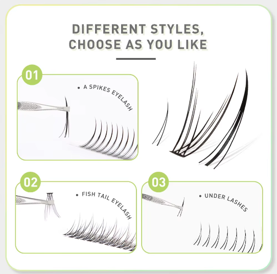 A/M Shape Spikes Fish Tail Cluster Eyelash Mix Heat Bonded Extension V Under Lower Lashes Individual Makeup DIY Premade Fan Set