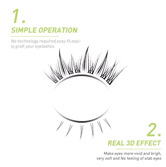 속눈썹 글루가 함께 제공되어 강력한 고정력을 자랑합니다. 풀 반지까지 함께 제공되어 작업 도중에도 편리하게 사용할 수 있어 초보자도 쉽게 속눈썹을 붙일 수 있습니다. 또한, 얇고 가벼운 속눈썹 덕분에 하루 종일 사용해도 눈에 부담이 없으며, 지속력이 뛰어나 오랫동안 유지됩니다.
